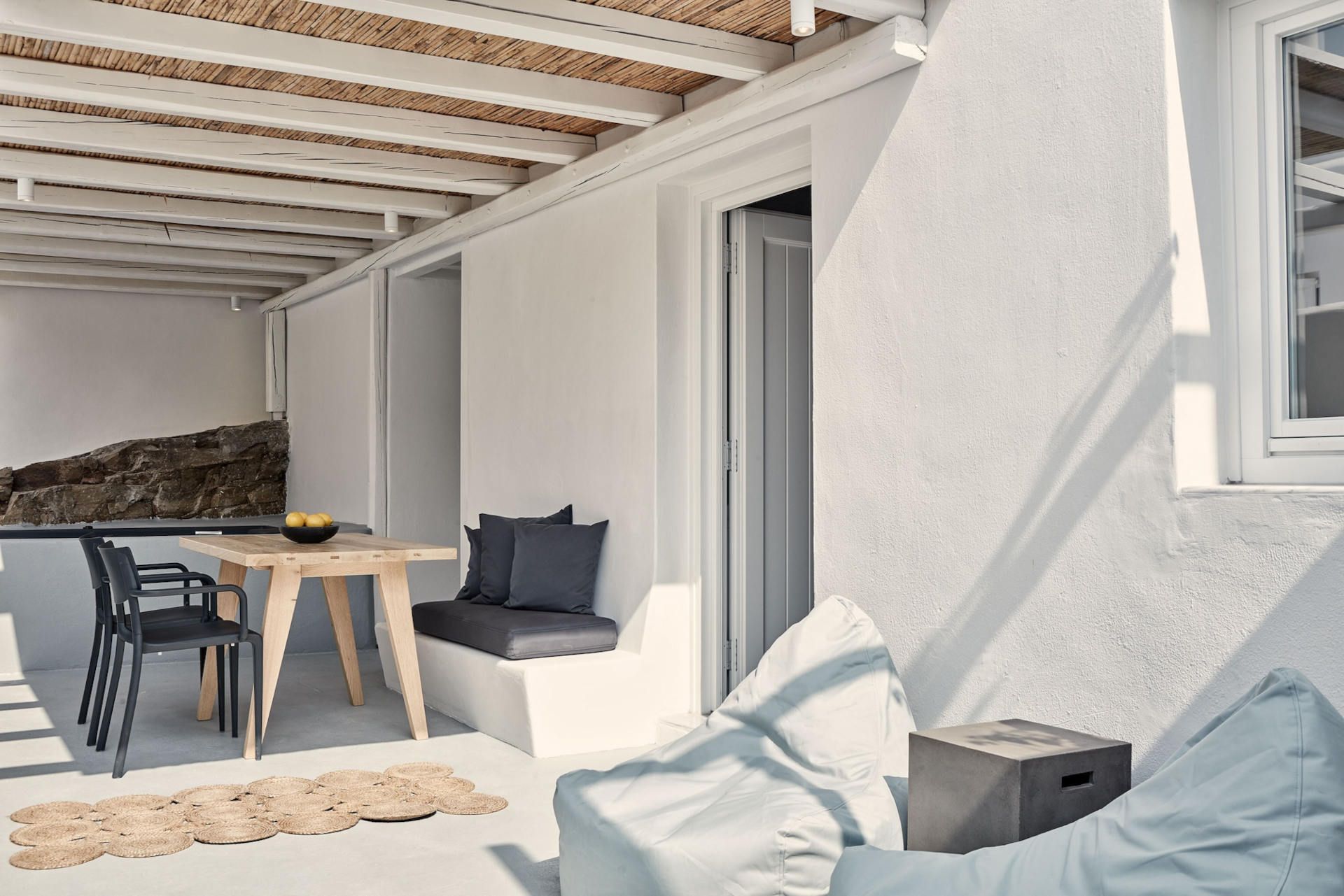 Δίνοντας έμφαση στον σχεδιασμό και με την επιλογή των κατάλληλων υλικών, η Maconstruction δημιούργησε για το Boho Suites έναν ξεχωριστό χαρακτήρα που εναρμονίζεται με φυσικότητα με τον περιβάλλοντα χώρο και την κυκλαδίτικη αισθητική.
