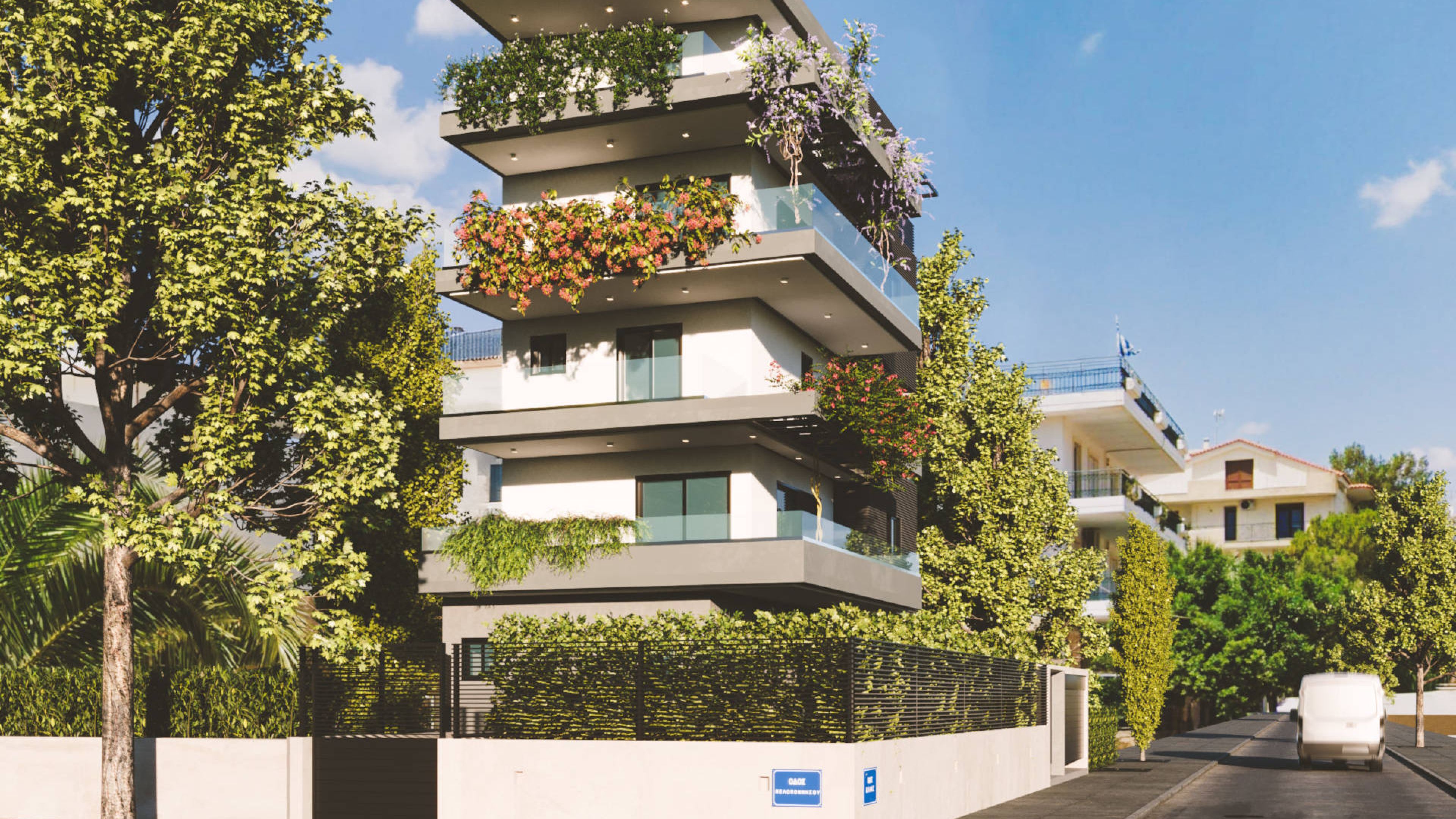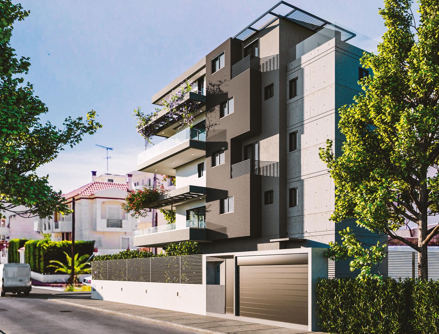 Δημιουργία φωτορεαλιστικών για πολυώροφη κατοικία στην Γλυφάδα. Τα φωτορεαλιστικά περιλάμβαναν εξωτερικές λήψεις του κτηρίου, οι οποίες απεικονίζουν ρεαλιστικά τον περιβάλλοντα χώρο.