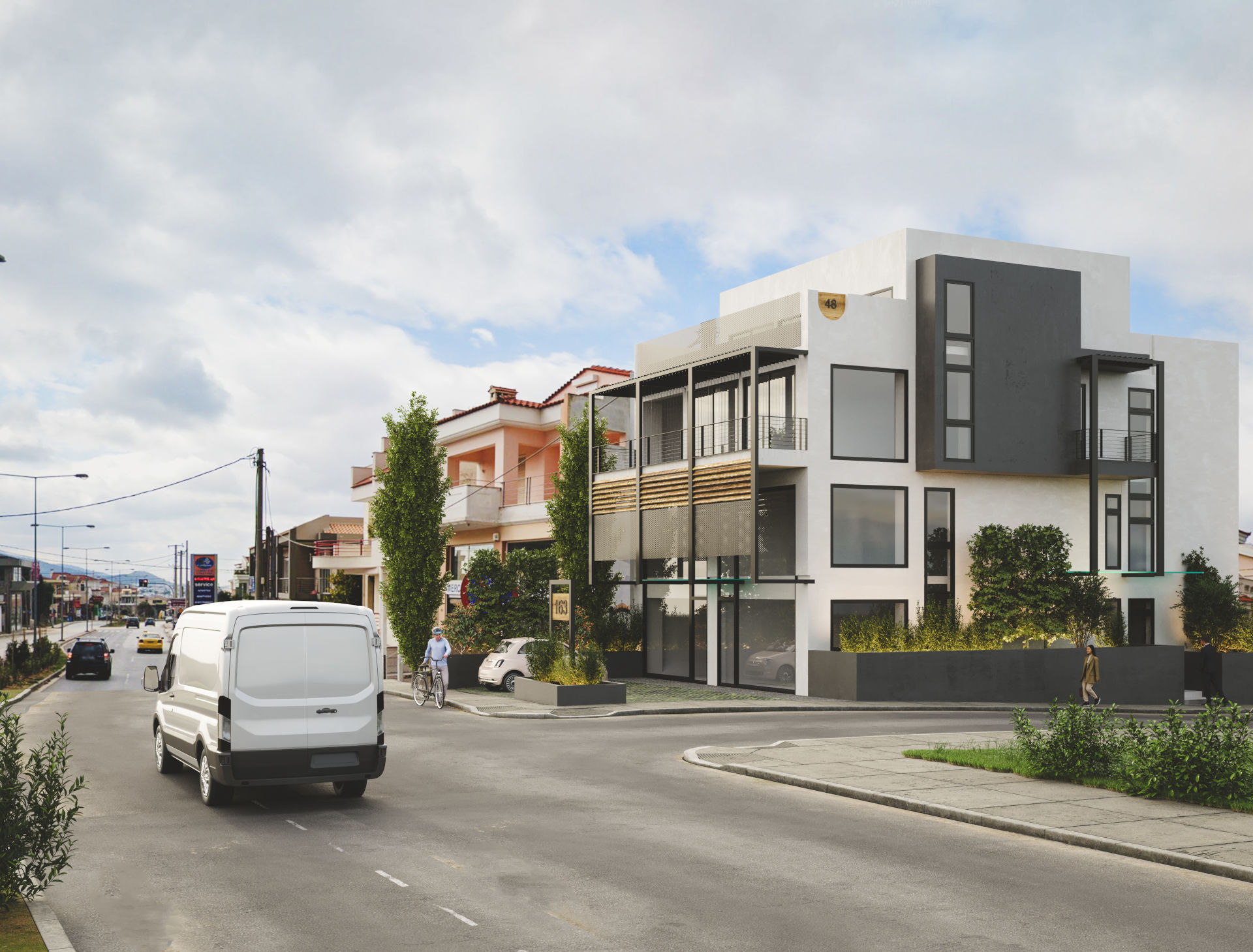 Δημιουργία φωτορεαλιστικών για κτήριο όπου στεγάζονται γραφεία στα Βριλήσσια. Πραγματοποιήθηκε μια σειρά φωτορεαλιστικών για να απεικονισθεί το κτήριο από όλες τις όψεις και σε σχέση με το φυσικό του περιβάλλον.
