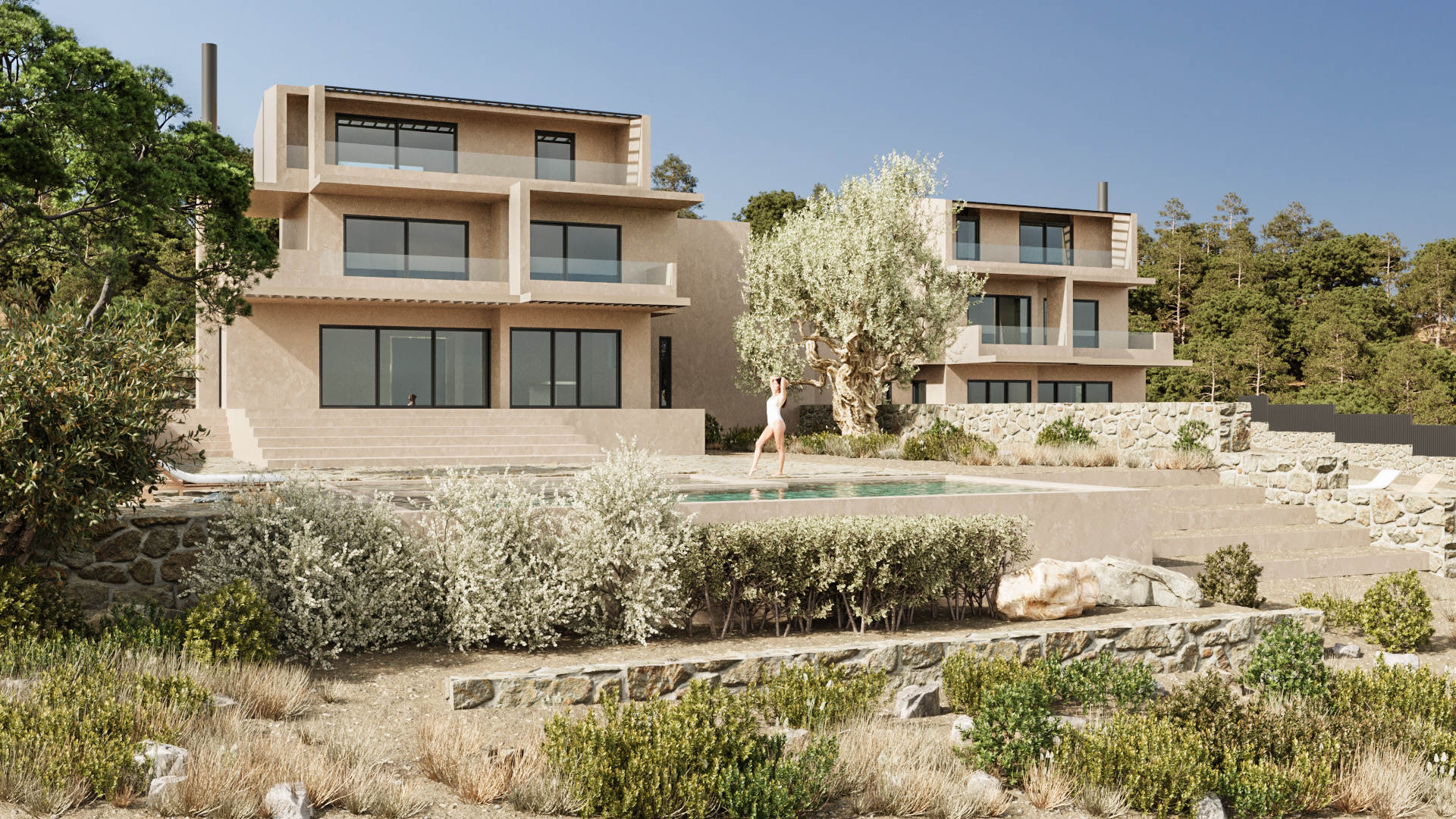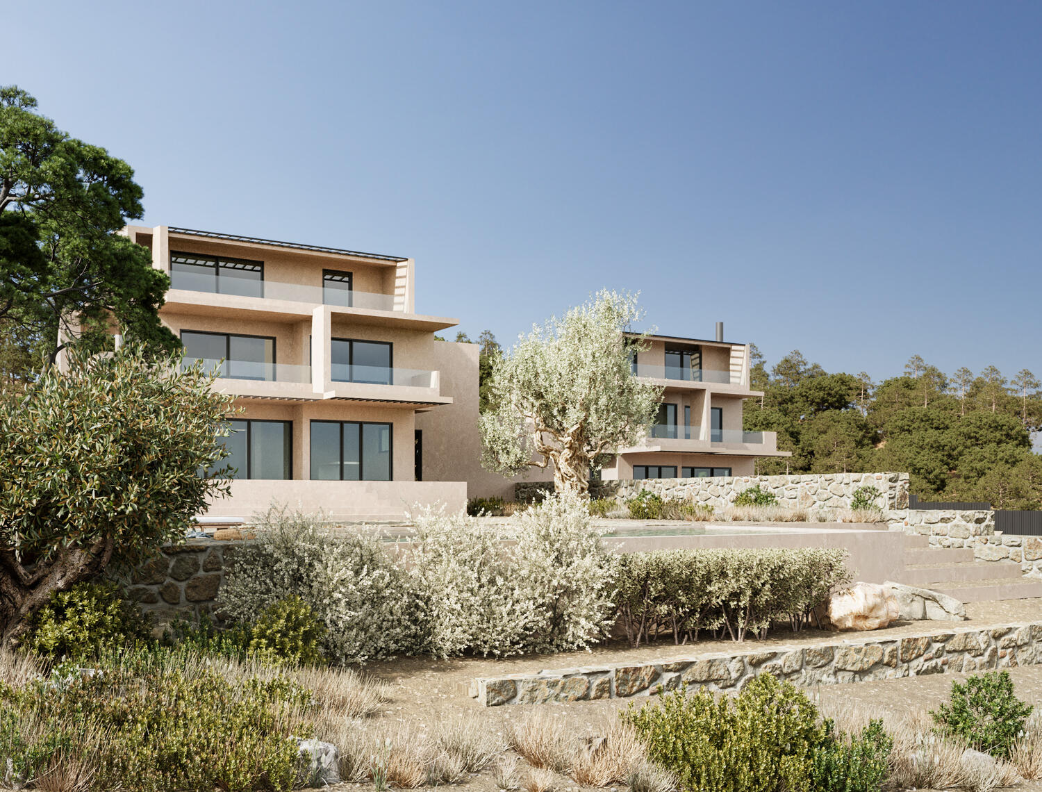 Δημιουργία φωτορεαλιστικών για συγκρότημα κατοικιών στο Θυμάρι Αττικής. Η σειρά των φωτορεαλιστικών που δημιουργήθηκε, κάλυψε την πλειοψηφία των όψεων του κτηριακού συγκροτήματος και σε συνδυασμό με την διαμόρφωση των εξωτερικών χώρων, έδωσε μια πλήρη και ακριβή εικόνα του έργου.