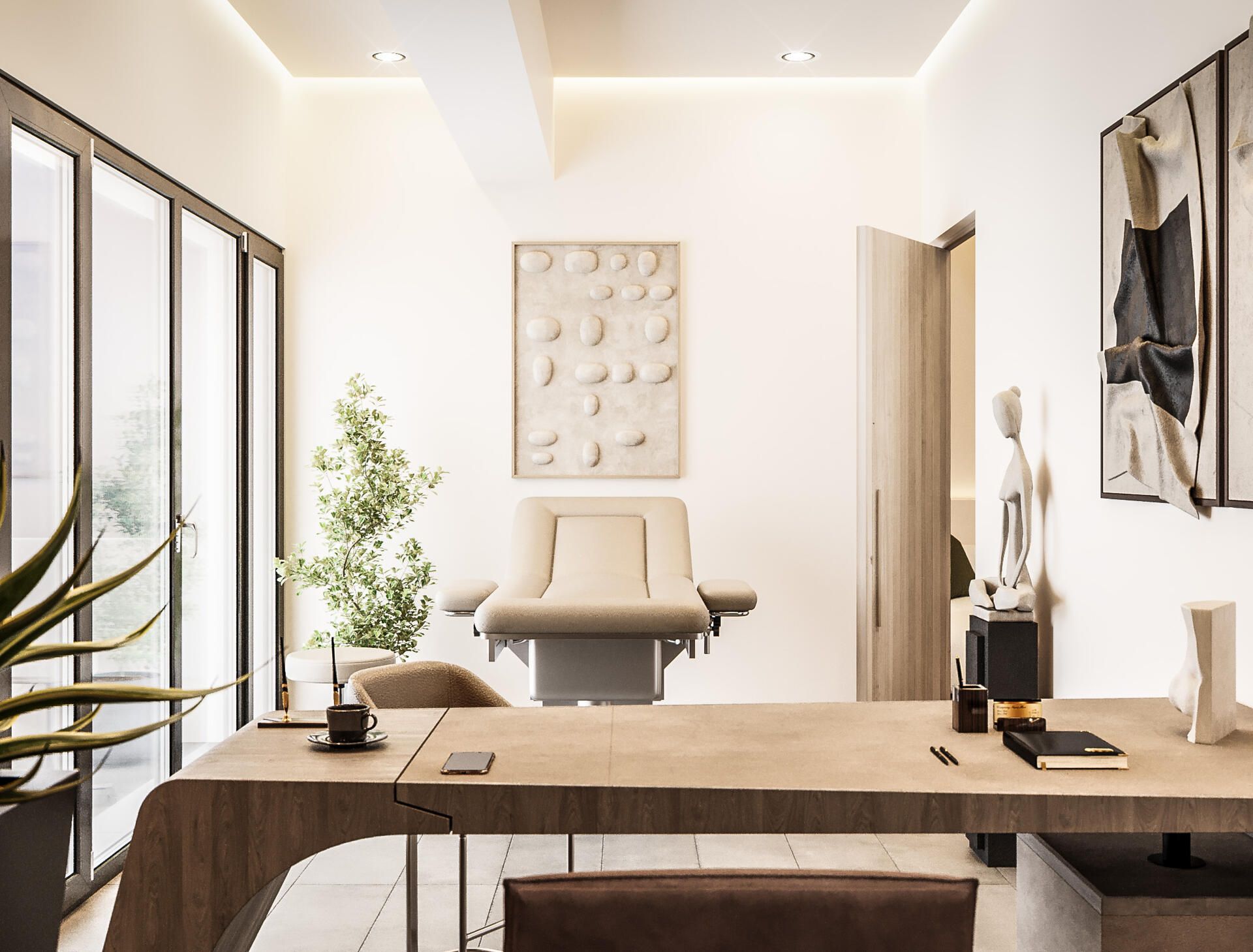Δημιουργία φωτορεαλιστικών για ιατρείο στην Μύκονο. Η σειρά των φωτορεαλιστικών που δημιουργήθηκε, κάλυψε την πλειοψηφία των χώρων του ιατρείου συμπεριλαμβανομένων των χώρων αναμονής καθώς και των βοηθητικών χώρων.