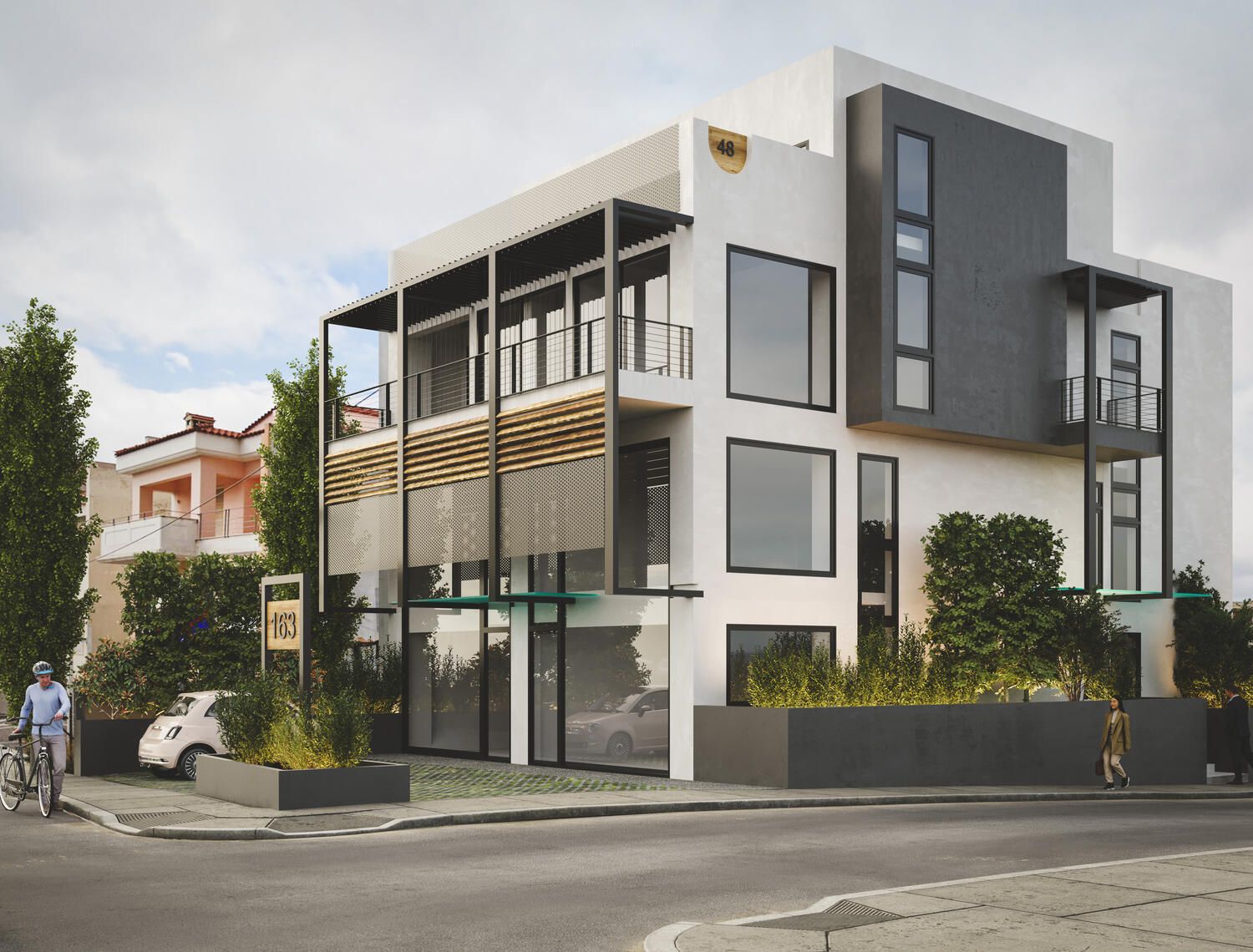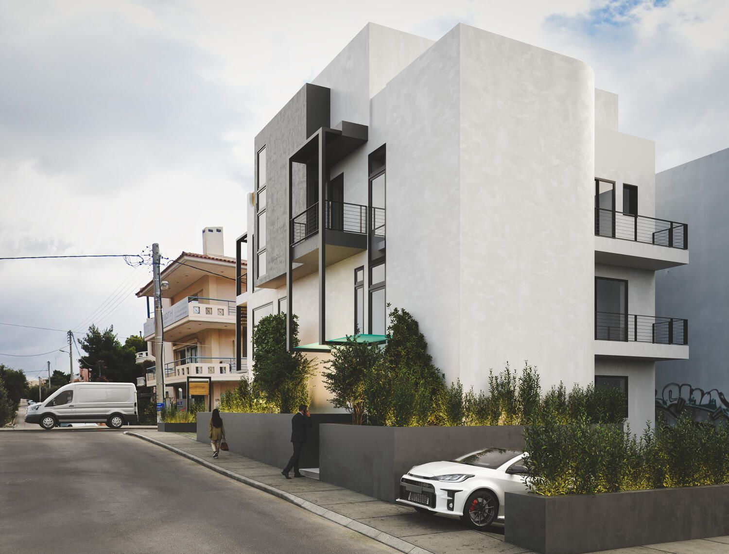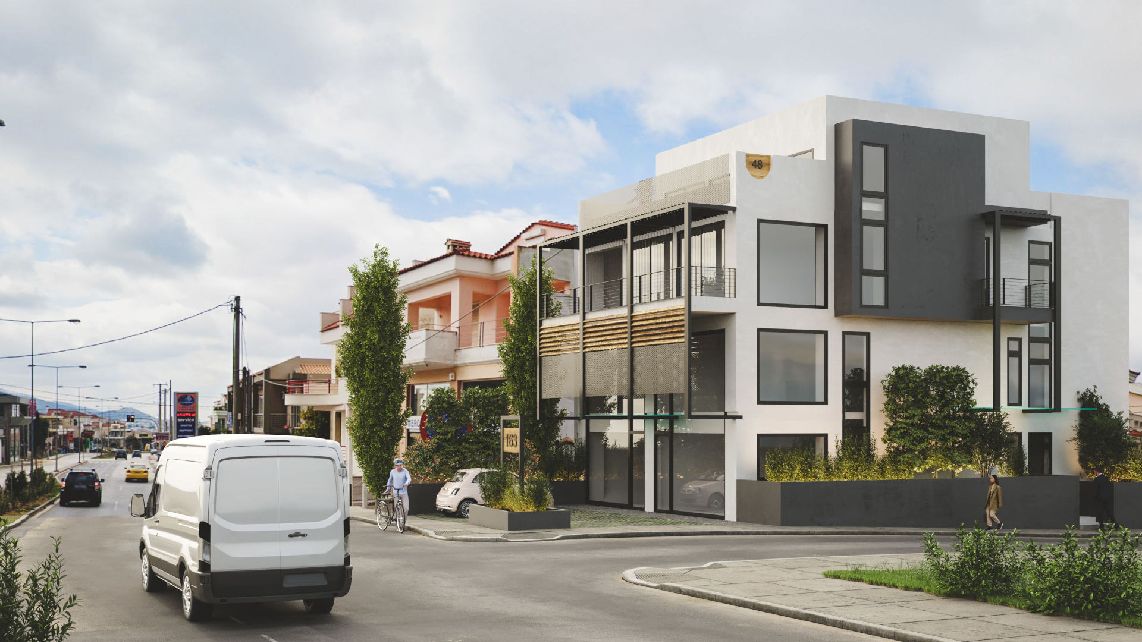 Δημιουργία φωτορεαλιστικών για κτήριο όπου στεγάζονται γραφεία στα Βριλήσσια. Πραγματοποιήθηκε μια σειρά φωτορεαλιστικών για να απεικονισθεί το κτήριο από όλες τις όψεις και σε σχέση με το φυσικό του περιβάλλον.