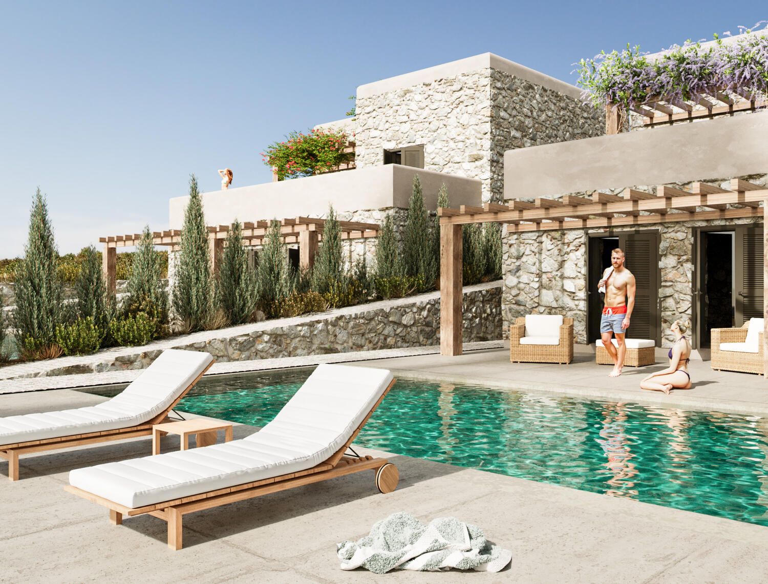 Δημιουργία φωτορεαλιστικών για συγκρότημα κατοικιών στην Μύκονο. Η σειρά των φωτορεαλιστικών που δημιουργήθηκε βάση των απαιτήσεων του πελάτη, κάλυψε σχεδόν το σύνολο του κτηριακού συγκροτήματος και απέδωσε με ακρίβεια και αισθητική αρτιότητα το έργο.